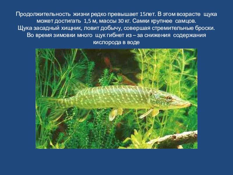 Во время зимовки много щук гибнет из – за снижения содержания кислорода в воде
