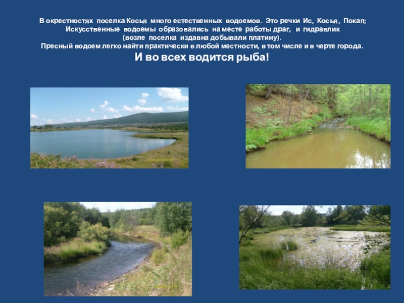 В окрестностях поселка Косья много естественных водоемов. Это речки Ис,