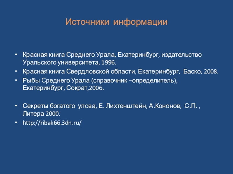 Рыбы Среднего Урала (справочник –определитель), Екатеринбург, Сократ,2006.