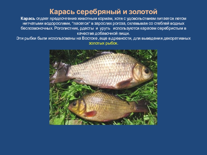 Карась отдает предпочтение животным кормам, хотя с удовольствием