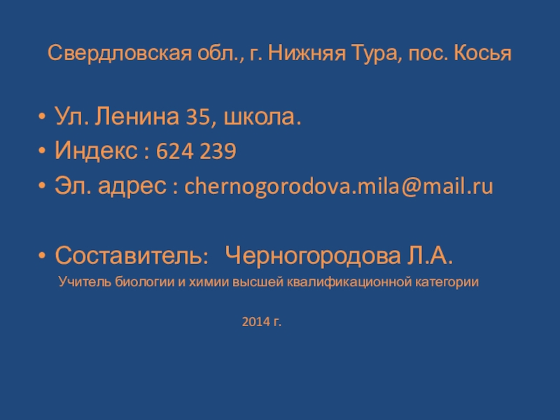 Слайд 27Свердловская обл., г. Нижняя Тура, пос. Косья