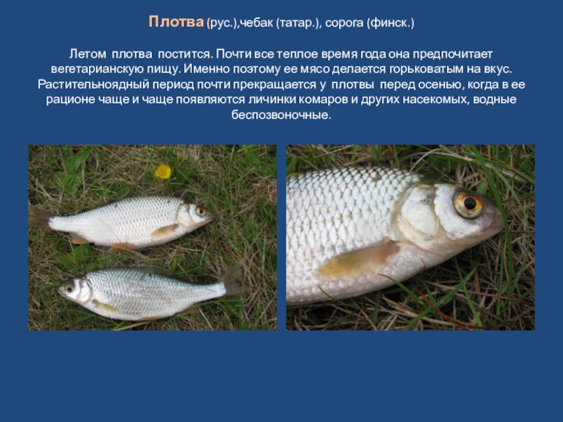 Слайд 5Плотва (рус.),чебак (татар.), сорога (финск.)
