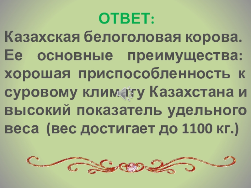 климату Казахстана и высокий показатель удельного веса (вес достигает до 1100 кг.)