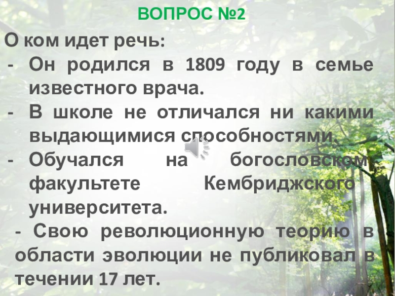 - Свою революционную теорию в области эволюции не публиковал в течении 17 лет.
