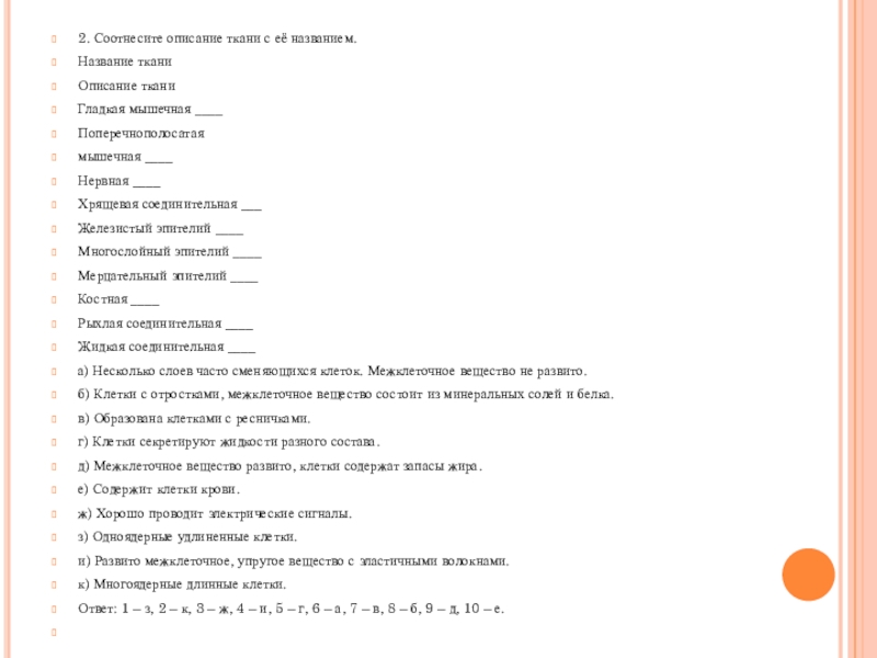 Ответ: 1 – з, 2 – к, 3 – ж, 4 – и, 5 – г, 6 – а, 7 – в, 8 – б, 9 – д, 10 – е.