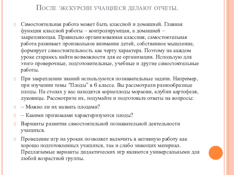 Слайд 16После экскурсии учащиеся делают отчеты.
