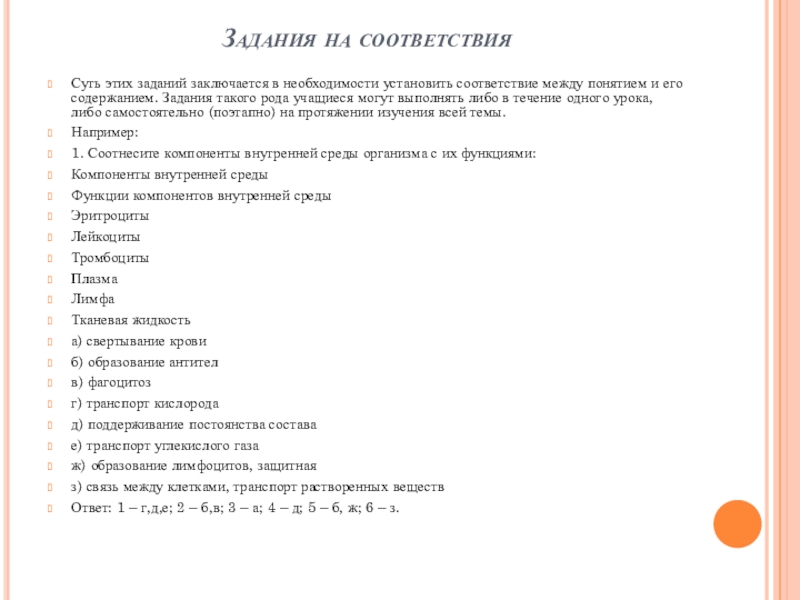 1. Соотнесите компоненты внутренней среды организма с их функциями:
