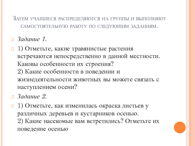 Слайд 14Затем учащиеся распределяются на группы и выполняют самостоятельную работу по следующим