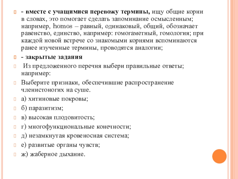 Слайд 10- вместе с учащимися перевожу термины, ищу общие корни в словах,