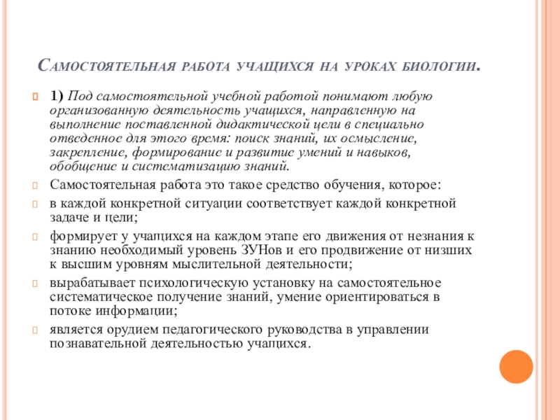 Слайд 3Самостоятельная работа учащихся на уроках биологии.