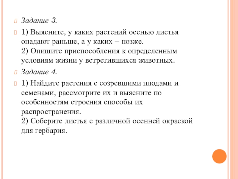 1) Выясните, у каких растений осенью листья опадают раньше, а