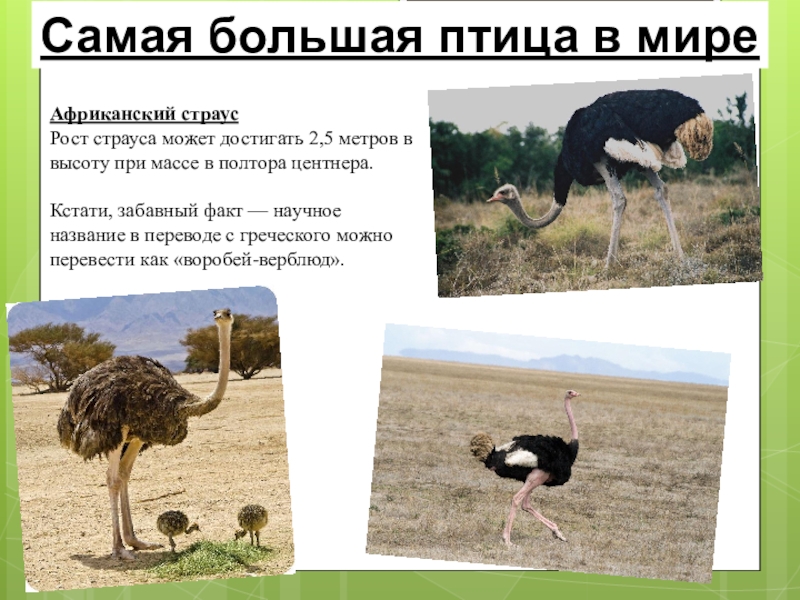 Кстати, забавный факт — научное название в переводе с греческого можно перевести как «воробей-верблюд».