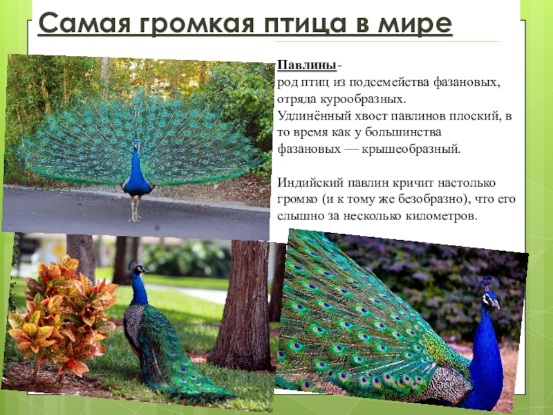 Павлины-род птиц из подсемейства фазановых, отряда курообразных.
