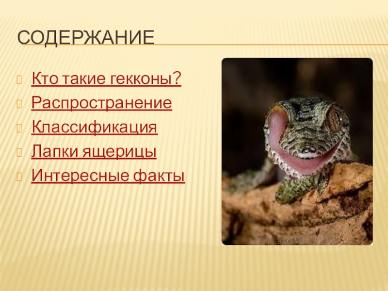 СодержаниеКто такие гекконы?РаспространениеКлассификацияЛапки ящерицыИнтересные факты