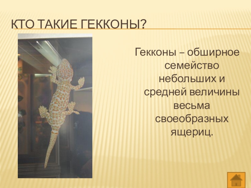 Кто такие гекконы?Гекконы – обширное семейство небольших и средней величины весьма своеобразных ящериц.