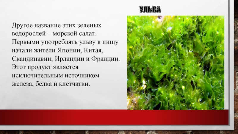 Другое название этих зеленых водорослей – морской салат. Первыми употреблять ульву