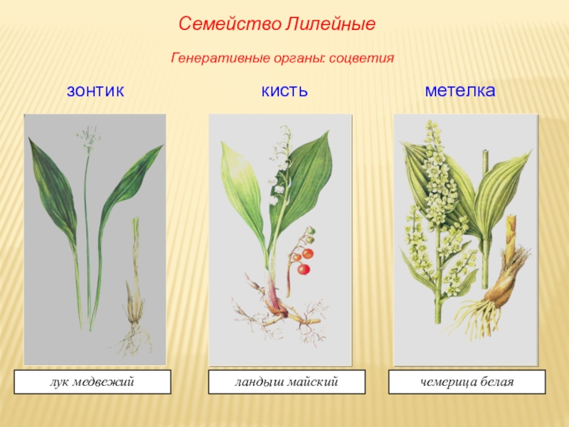 (лук, чеснок) (тюльпаны) (ландыш, вороний глаз)