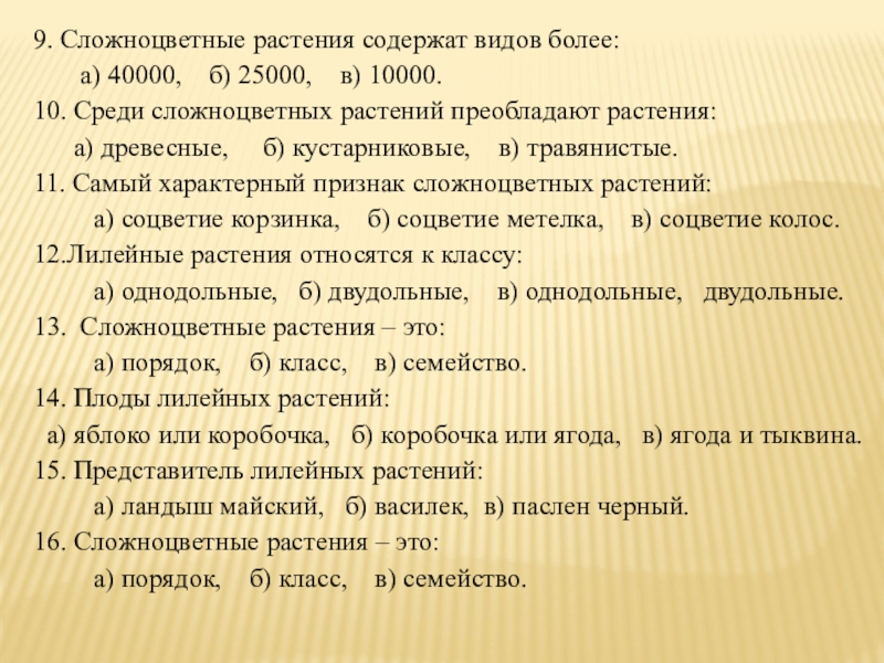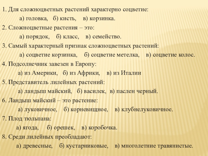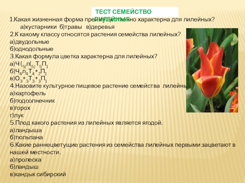 ТЕСТ СЕМЕЙСТВО ЛИЛЕЙНЫЕ