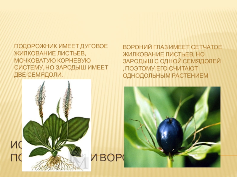 Вороний глаз имеет сетчатое жилкование листьев, но зародыш с одной семядолей , поэтому его считают однодольным растением