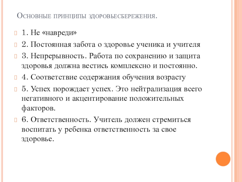 3. Непрерывность. Работа по сохранению и защита здоровья должна вестись комплексно и постоянно.