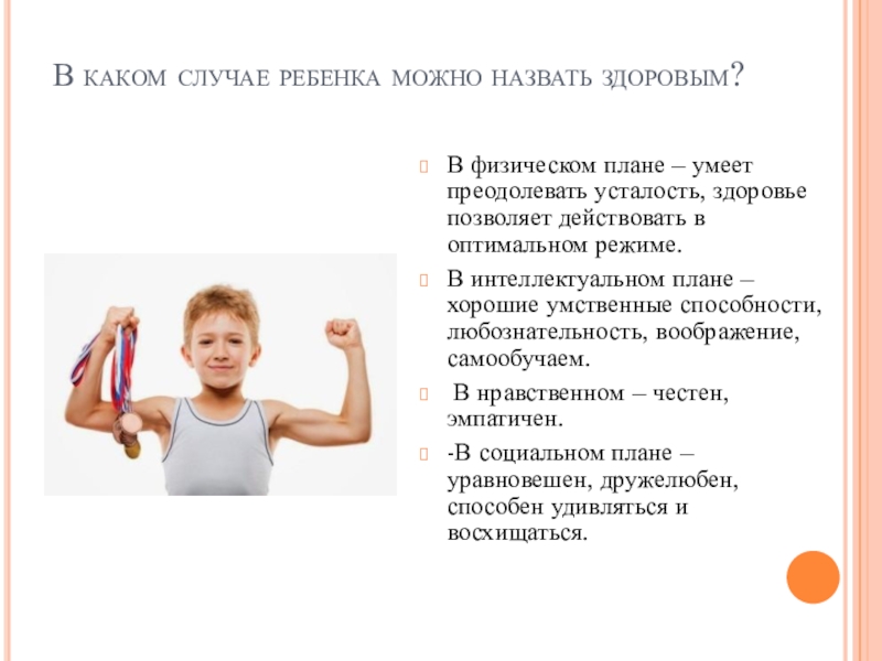 Слайд 5В каком случае ребенка можно назвать здоровым?