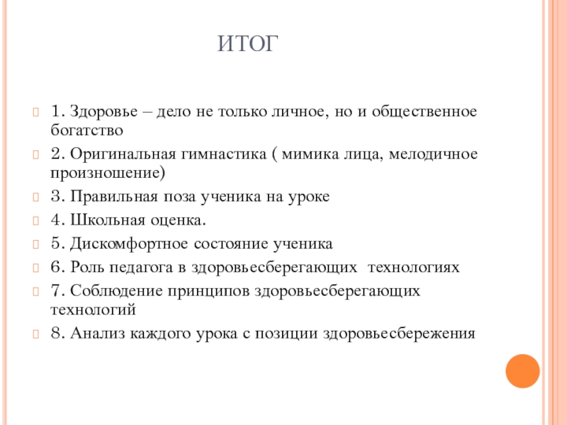 Слайд 8Здоровьесберегающие технологии «Совокупность форм и приемов организации учебного процесса без ущерба