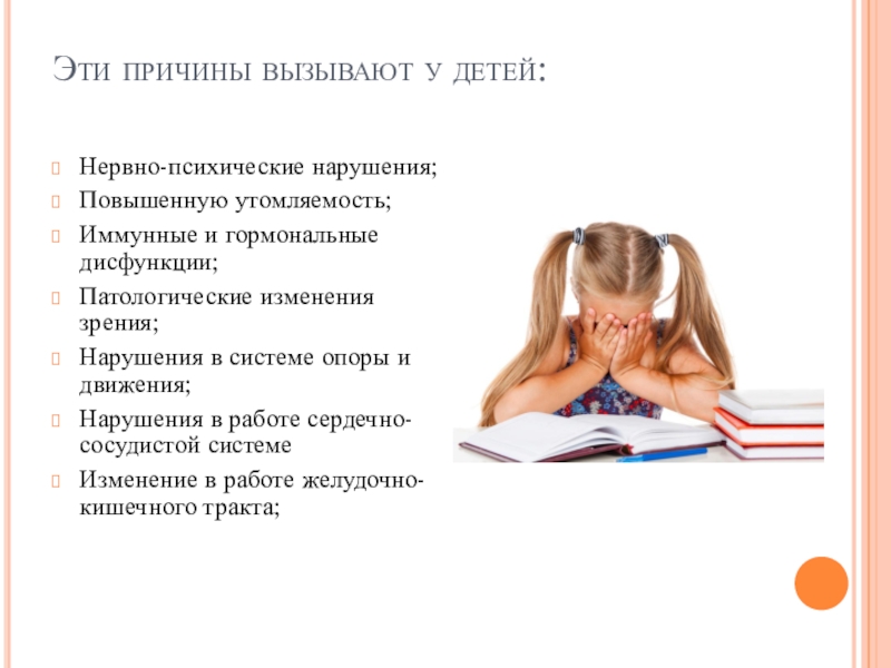 Несоблюдение элементарных физиологических и гигиенических требований к организации учебного процесса.