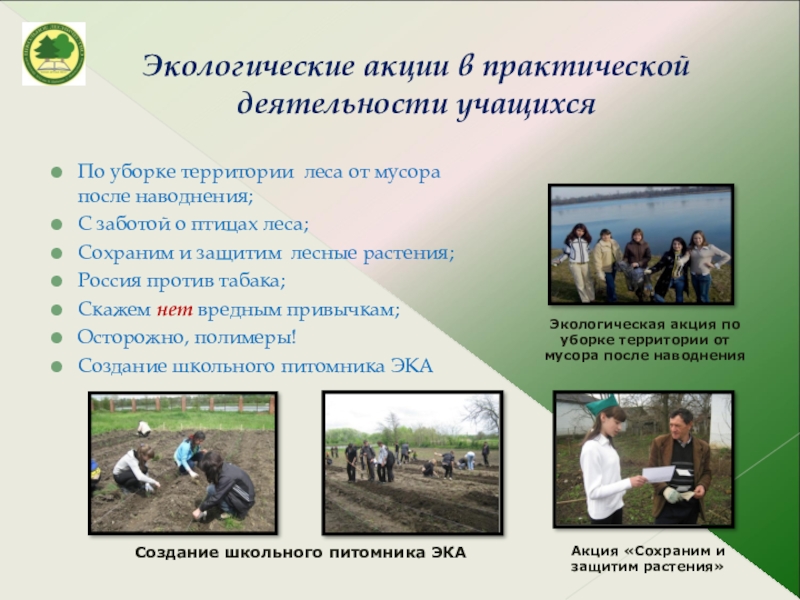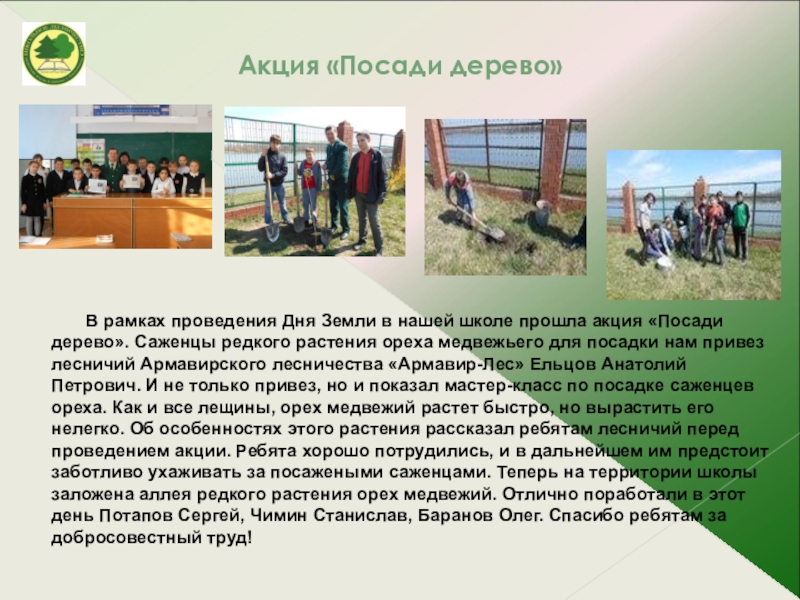 Создание школьного питомника ЭКА