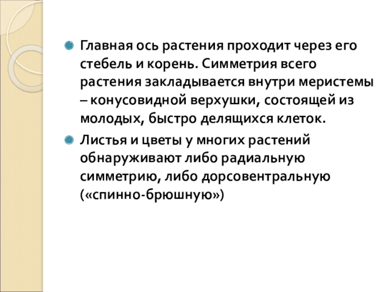 Главная ось растения проходит через его стебель и корень. Симметрия всего