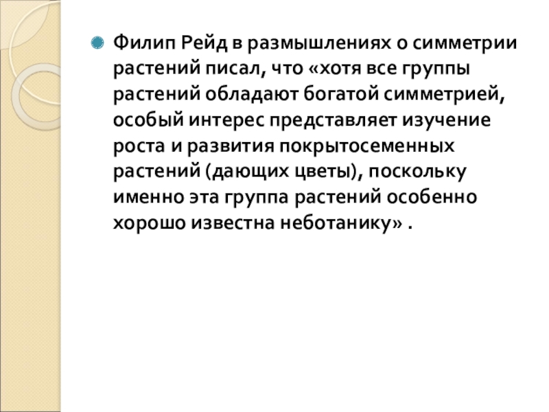Филип Рейд в размышлениях о симметрии растений писал, что «хотя все