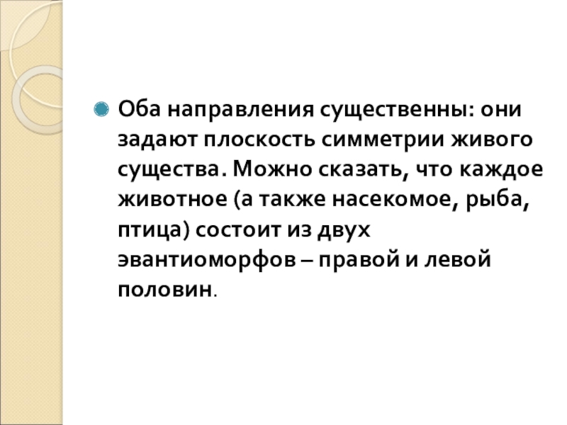 Оба направления существенны: они задают плоскость симметрии живого существа. Можно сказать,
