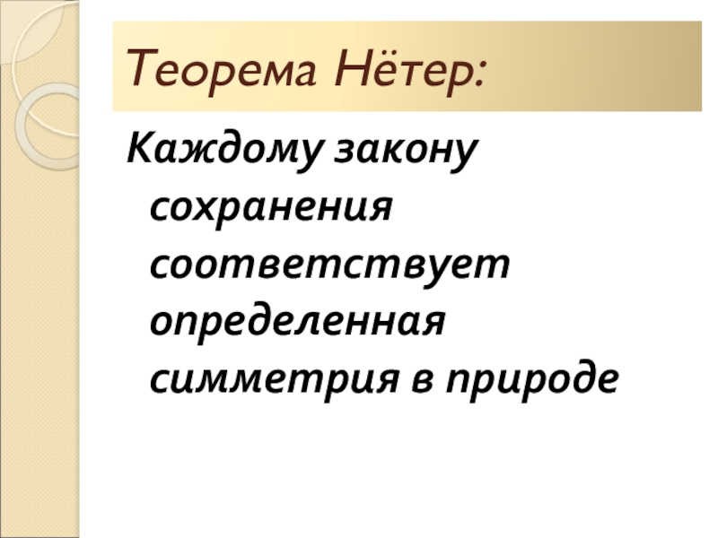 Каждому закону сохранения соответствует определенная симметрия в природе
