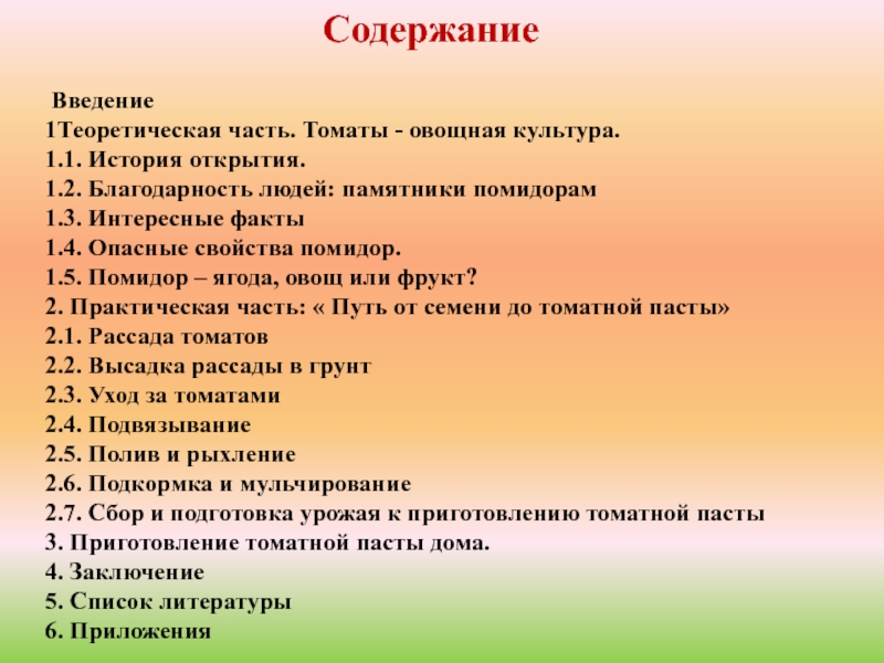 Задачи: - изучить теоретические основы выращивания томатов и технологию производства томатного сока и исследовать на практике;