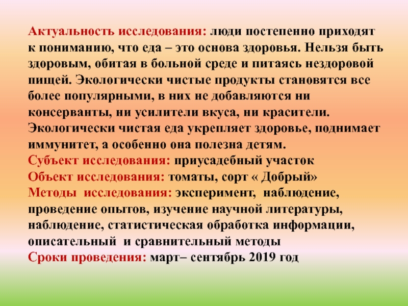 Слайд 3Актуальность исследования: люди постепенно приходят к пониманию, что еда – это