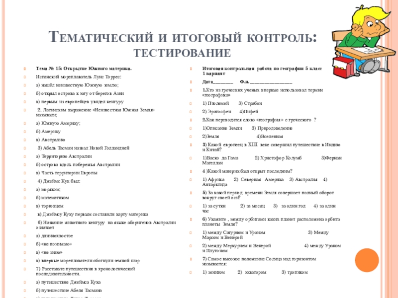 Итоговая контрольная работа по географии 5 класс 1 вариант