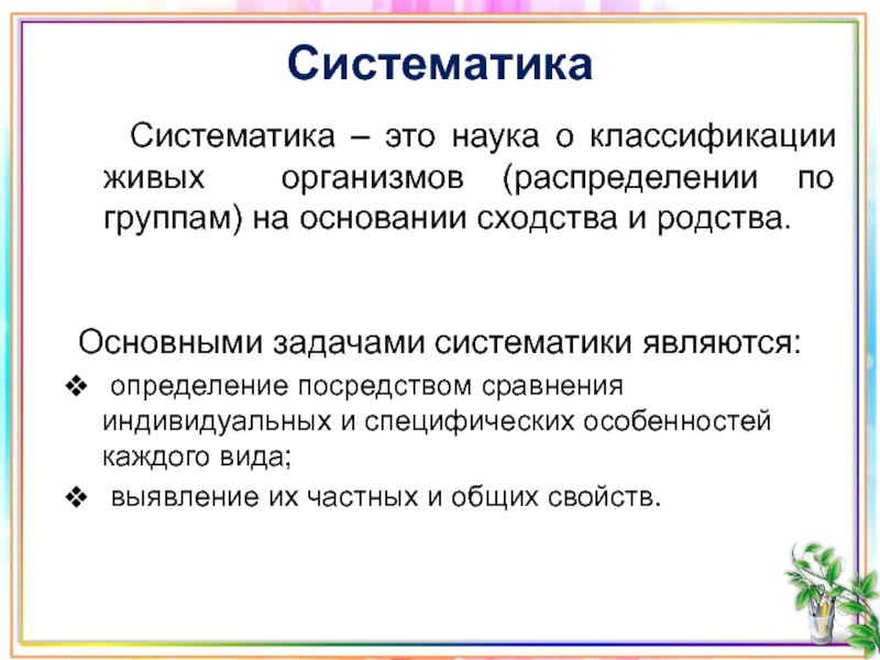 Основными задачами систематики являются: