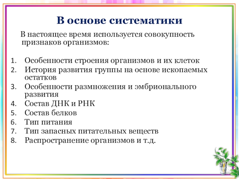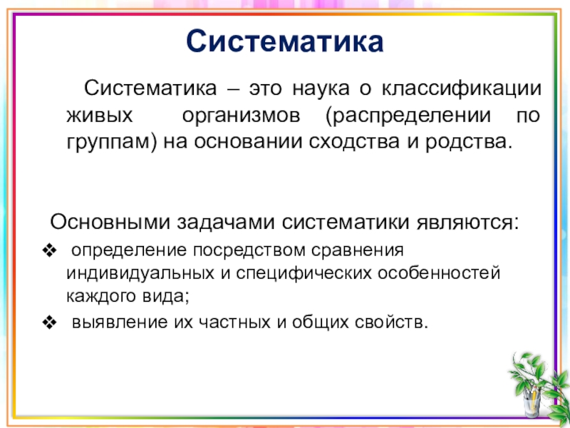 Основными задачами систематики являются:
