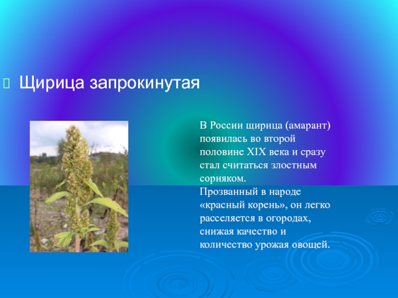 Прозванный в народе «красный корень», он легко расселяется в огородах, снижая качество и количество урожая овощей.