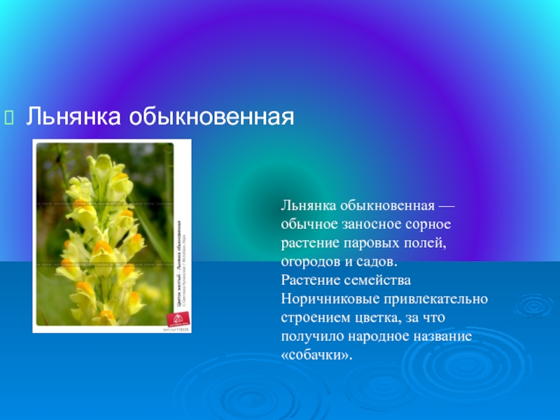 Льнянка обыкновенная — обычное заносное сорное растение паровых полей, огородов и