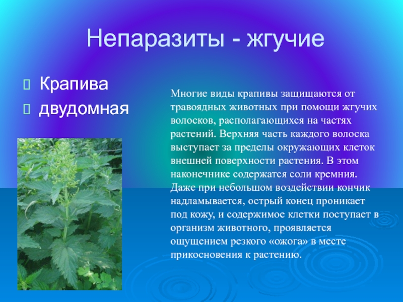 Слайд 20Непаразиты - жгучие