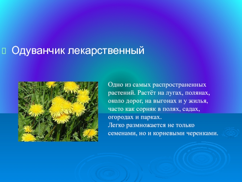 Слайд 19Одуванчик лекарственный