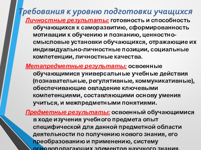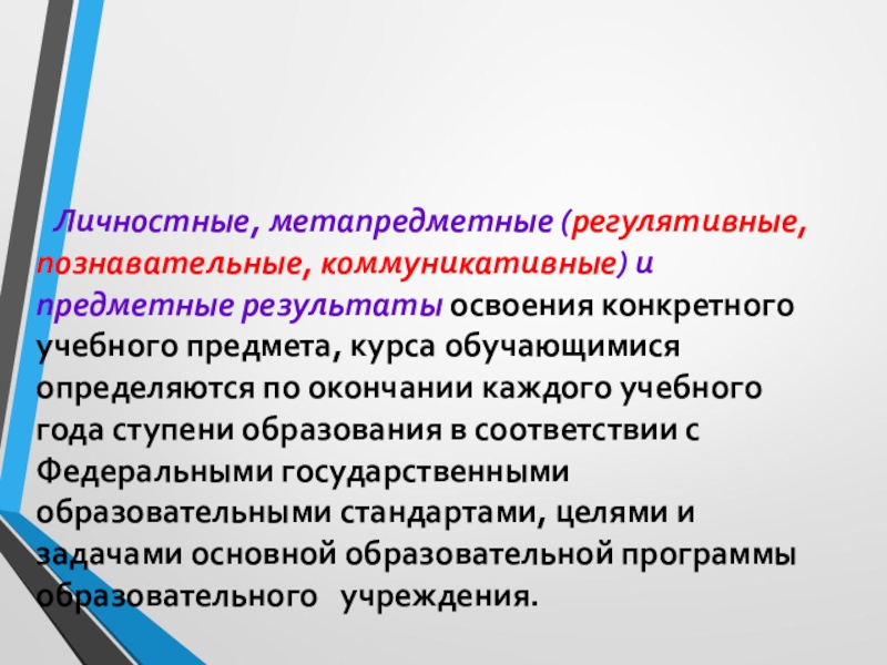 Слайд 15 Личностные, метапредметные (регулятивные, познавательные, коммуникативные) и предметные результаты освоения конкретного учебного
