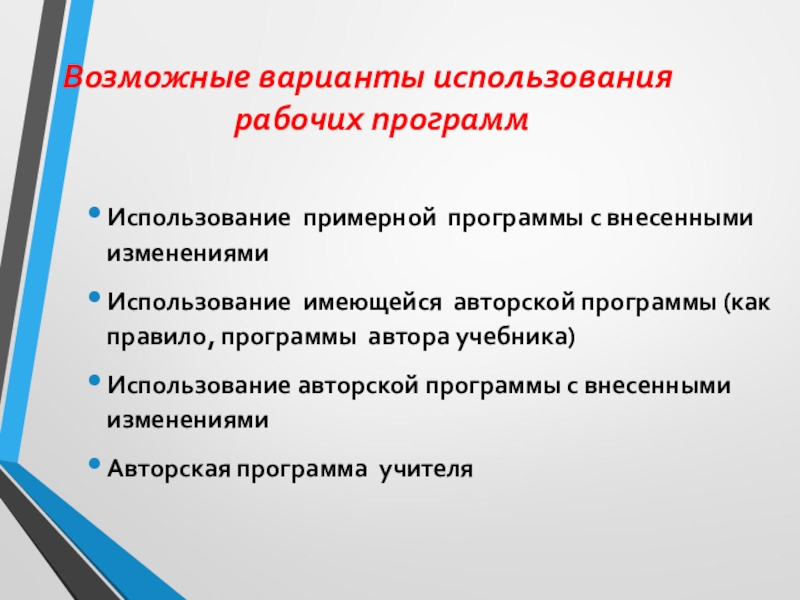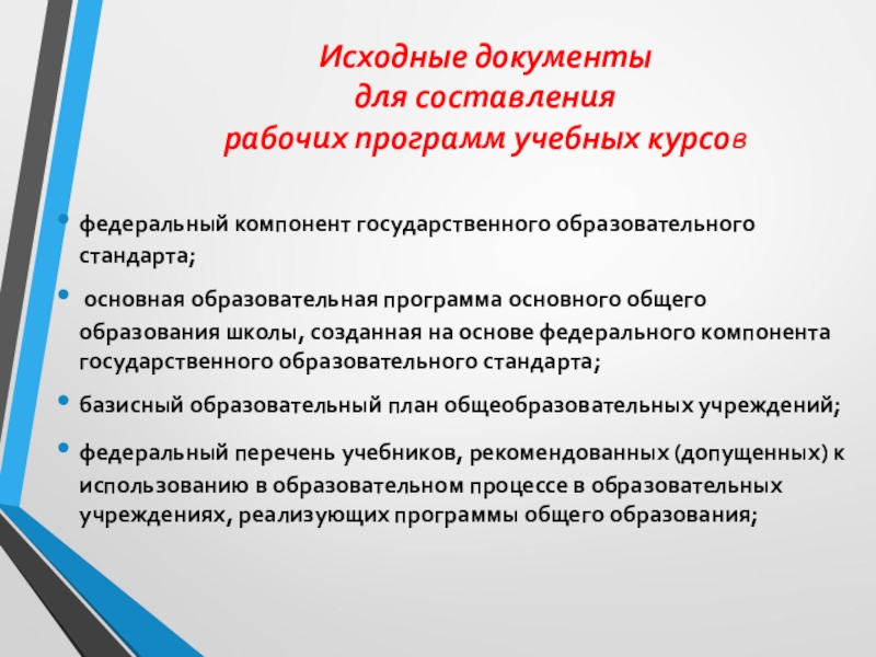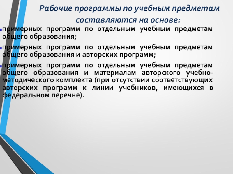 Слайд 8 Рабочие программы по учебным предметам составляются на основе: