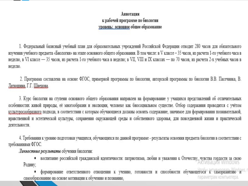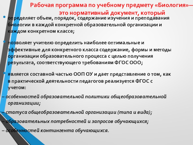 Слайд 4Рабочая программа по учебному предмету «Биология»— это нормативный документ, который