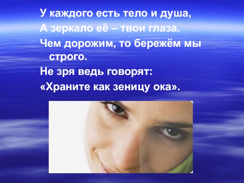 Слайд 1БЕРЕГИ ГЛАЗ КАК АЛМАЗ