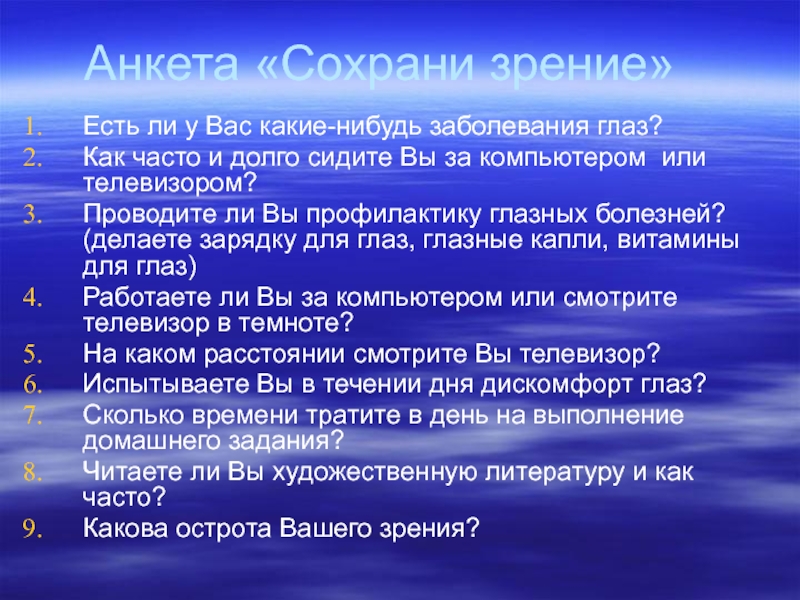 Проводите ли Вы профилактику глазных болезней? (делаете зарядку для глаз, глазные капли, витамины для глаз)