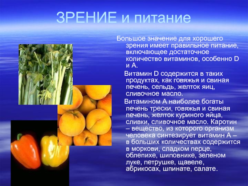 Большое значение для хорошего зрения имеет правильное питание, включающее