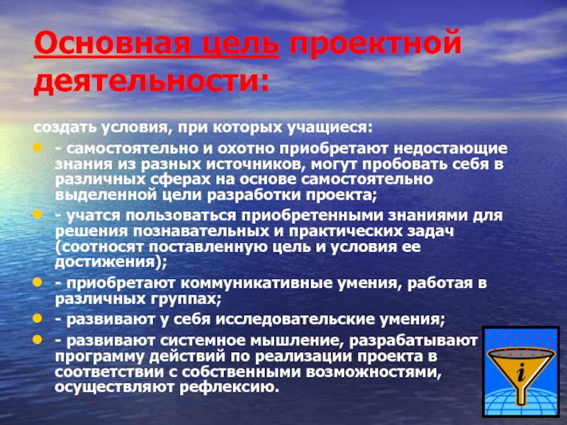 Слайд 1Основная цель проектной деятельности: