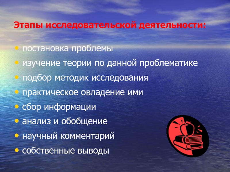 Слайд 4Этапы исследовательской деятельности: