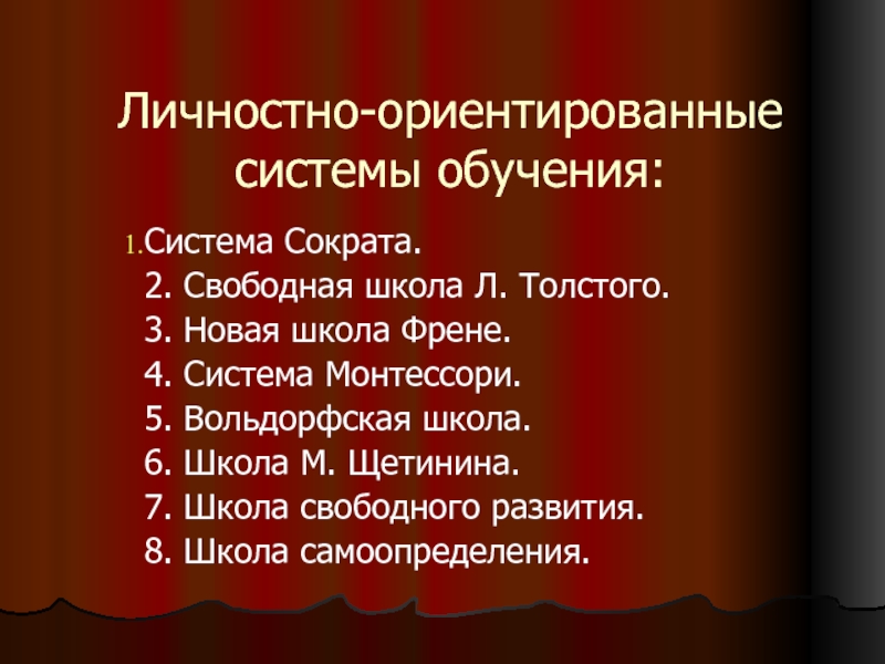 Слайд 11Личностно-ориентированные системы обучения: